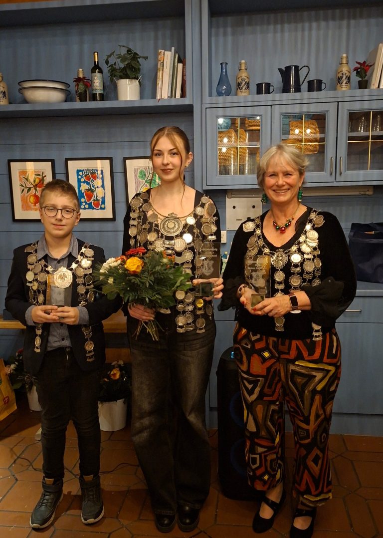 v.l.: Jugendkönig: Tobias Liebisch, Schützenkönigin Viktoria Samol, Damenkönigin Barbara Bodenbach